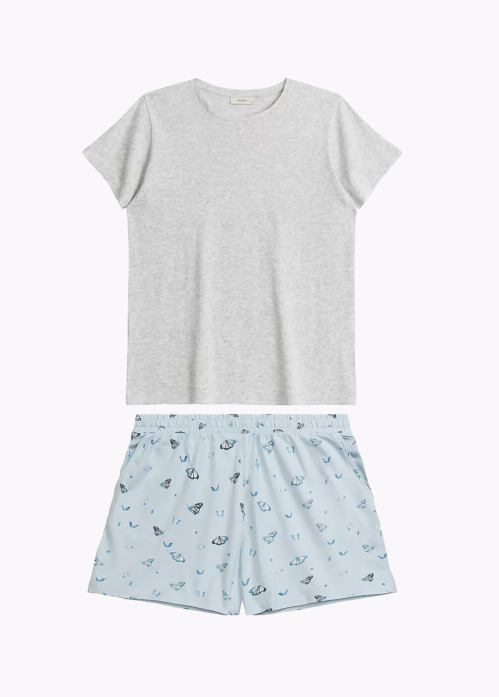Letnia piżama damska- koszulka z prążkowanej, bawełnianej dzianiny- krótki rękaw- półokrągły dekolt- do kompletu wzorzyste spodenki- wygodne kieszenie- pas obszyty bawełną číst celé