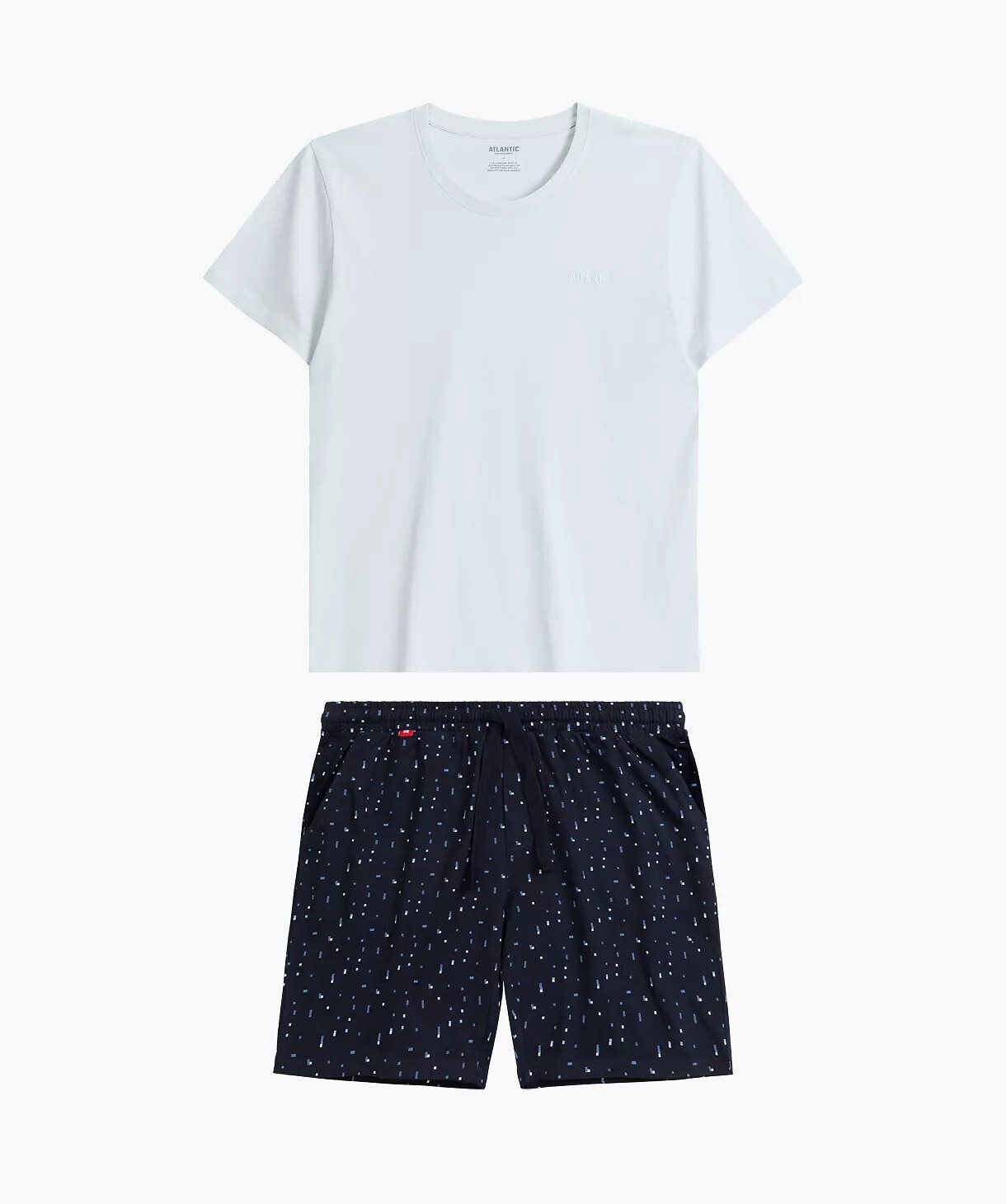 Letnia piżama męska- miękka dzianina z bawełny- koszulka z krótkim rękawem- okrągły dekolt- luźne, krótkie spodenki w geometryczne wzory- w pasie guma obszyta dzianiną i wiązany troczek do regulacji obwodu pasa- na biodrach wygodne kieszenie číst celé