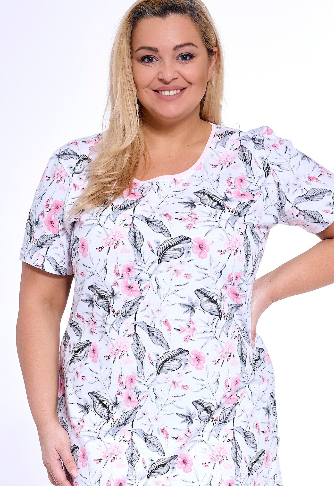 Koszula nocna- wysoka jakość bawełny- print w kolorowe kwiaty- krótki rękaw- półokrągły dekolt