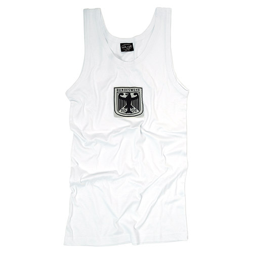 Sportovní tílko německé armády s motivem znaku německého Bundeswehru.Od německé značky Mil-Tec.Vlastnosti:• na přední straně našitá tkaná nášivka německé orlice (znak BUNDESWEHERU)• s tkanou nášivkou na prsou
