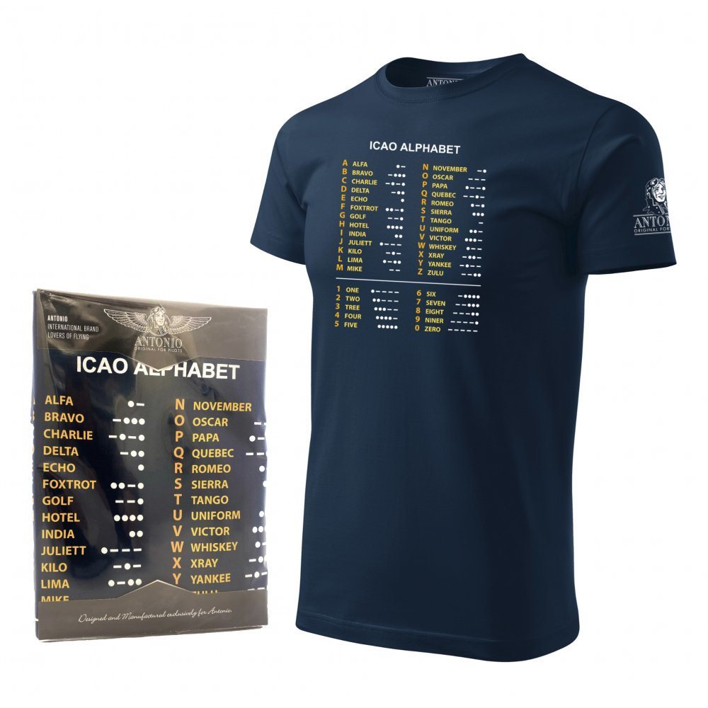 Tričko s krátkým rukávem s motivem hláskovací abecedy Mezinárodní organizace pro civilní letectví. číst celé