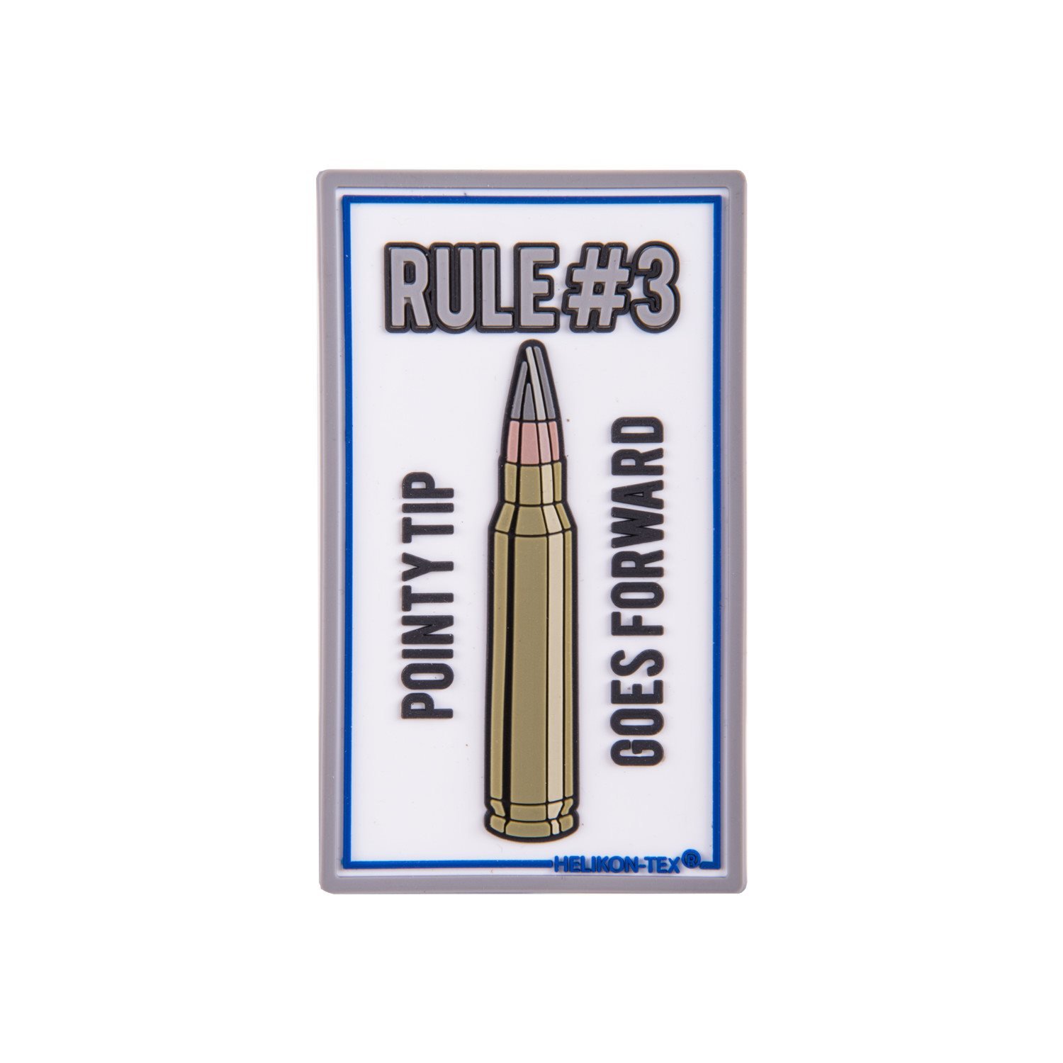 Plastová nášivka s nápisem RULE#3 POINTY TIP GOES FORWARD. Nášivka je na suchém zipu. Velikost - cca 7,5 x 4,5 mm, materiál - PVC. číst celé