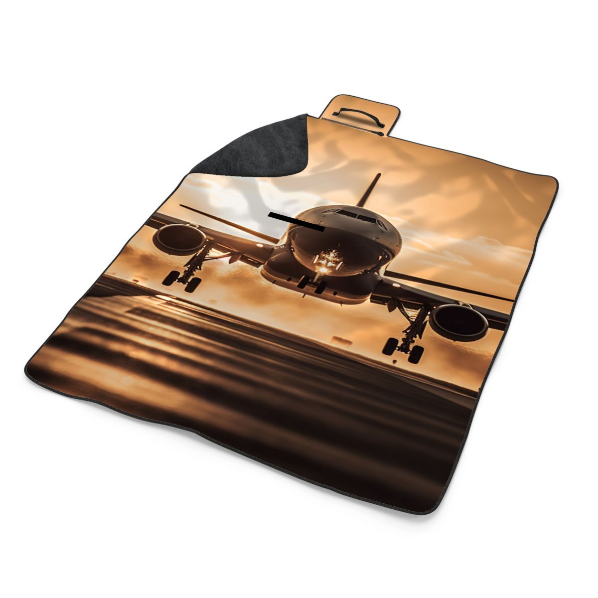 Plážová deka Letadlo přistávající při západu slunce: 200x140 cm