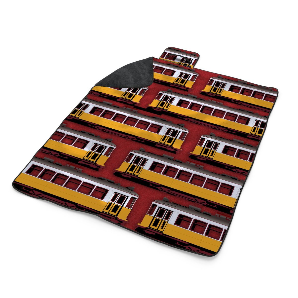 Plážová deka Lisabonské historické tramvaje Červený Pattern: 200x140 cm
