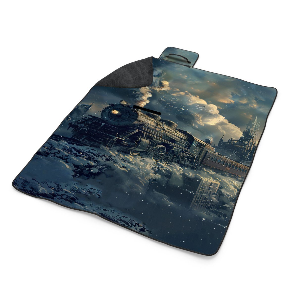Plážová deka Parní lokomotiva v zasněženém městě: 200x140 cm