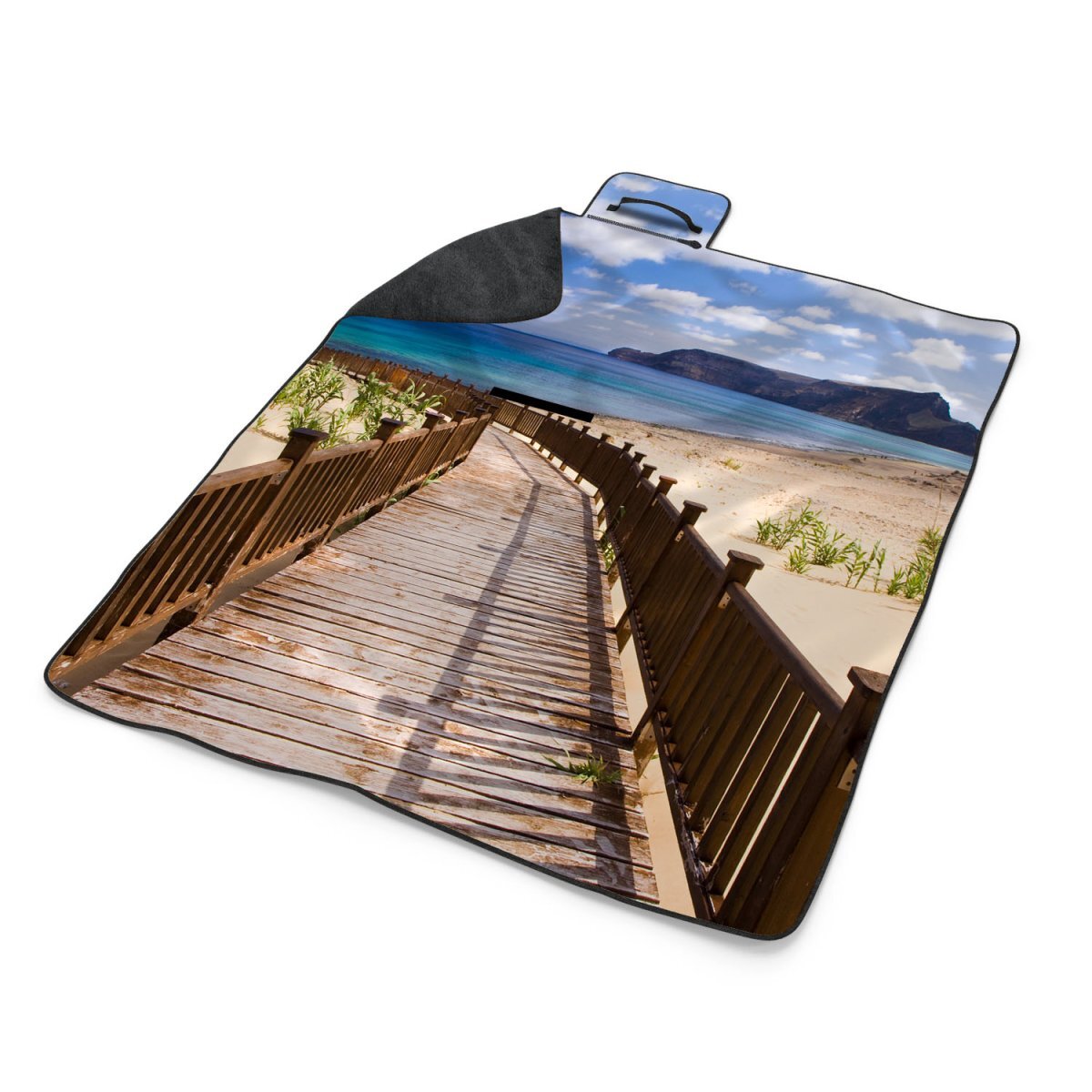 Naše plážová deka je vyrobena z vysoce kvalitního microfleece o gramáži 360 g/m², podobně jako klasická deka, což ji činí měkkou a příjemnou na dotek. Spodní strana je podšitá nepromokavou šusťákovinou o gramáži 95 g/m², která zajišťuje ochranu před vlhkostí a nečistotami. Díky tomu je deka ideální pro použití na pláži, koupališti, v parku, kempu nebo na pikniku.