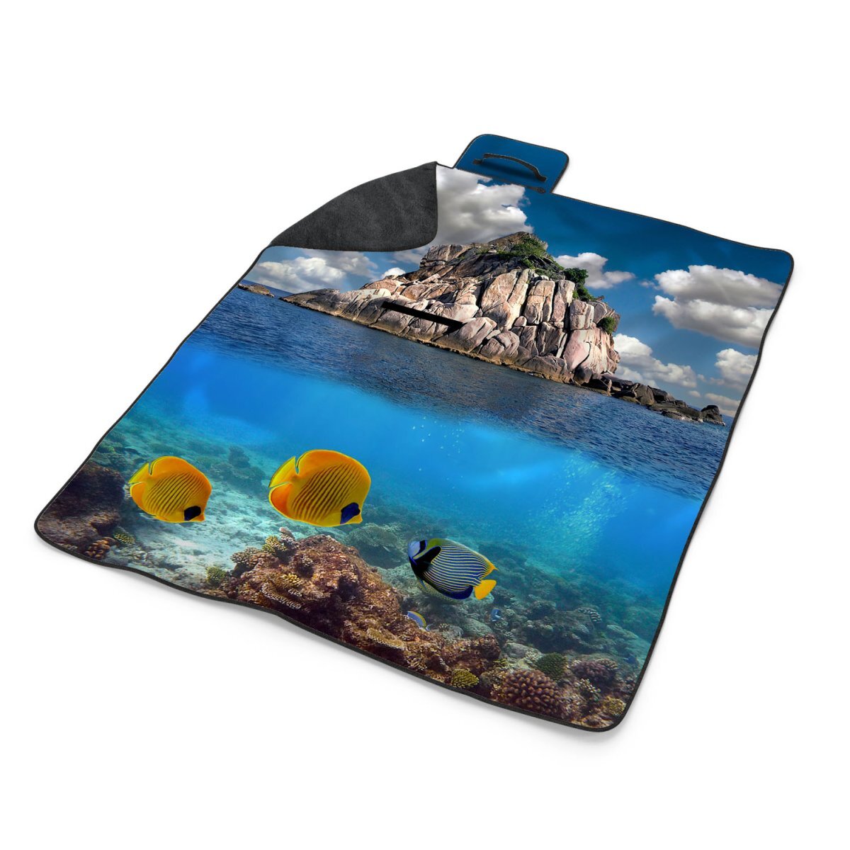 Naše plážová deka je vyrobena z vysoce kvalitního microfleece o gramáži 360 g/m², podobně jako klasická deka, což ji činí měkkou a příjemnou na dotek. Spodní strana je podšitá nepromokavou šusťákovinou o gramáži 95 g/m², která zajišťuje ochranu před vlhkostí a nečistotami. Díky tomu je deka ideální pro použití na pláži, koupališti, v parku, kempu nebo na pikniku.