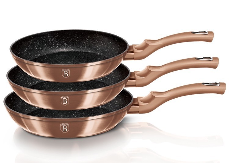 BERLINGERHAUS Pánev s mramorovým povrchem sada 3 ks Rosegold Metallic Line BH-1278