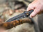 Má pevnú čepeľ s pílovým chrbtom, z nástrojovej ocele D2 s čiernym práškovým povrchom.