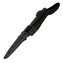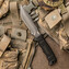 S pevnou čepeľou s čiastočne zúbkovanou hranou z ocele AUS-8 s čiernou práškovou farbou proti odleskom a korózií.