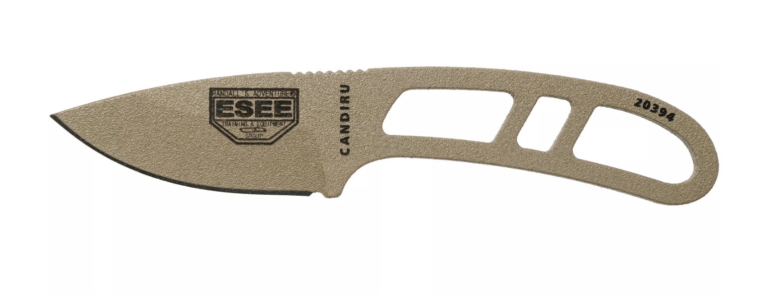 Malý pevný nôž na krk ESEE CAN-DE-E Dark Earth Candiru je vhodný na prežitie, ale aj na každodenné (EDC) nosenie. So súpravou na prežitie.