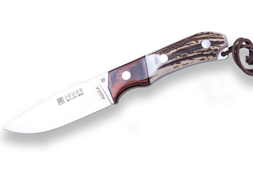 JOKER CC105 Aguila vonkajší nôž 10,5cm, jelení paroh a drevo, kožené puzdro