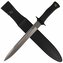 Má pevnú čepeľ typu Dagger (dýka) s hladkou hranou z nerezovej ocele Inox 1-42 so striebrorným satin povrchom. S kovovou obojstrannou záštitou na ochranu ruky.