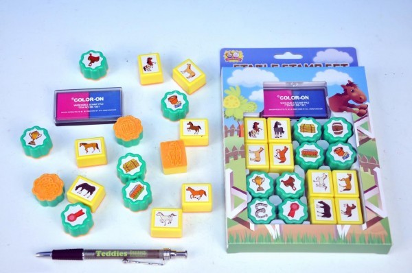Razítka sada jezdectví 16ks s dvoubarevnou poduškou v krabičce