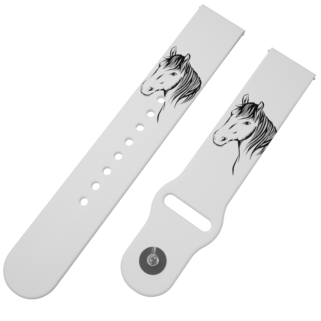 Potištěný univerzální řemínek naší vlastní výroby ve velikosti 20 mm s designem "KŮŇ"pro obvod zápěstí 15 - 23 cm.Bílý náhradní řemínek pro chytré hodinky se siluetou hlavy koně.To pravé pro koňáky i milovníky koní.Vlastní výroba i potisk Jsme jediní nejen v Čechách, ale i v Evropě, kdo vyrábí...