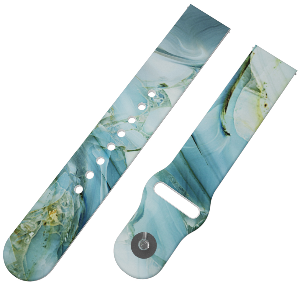 Potištěný univerzální řemínek naší vlastní výroby ve velikosti 22 mm s designem "MODRO-ŠEDÝ MRAMOR" pro obvod zápěstí 15 - 23 cm.Bílý náhradní řemínek pro chytré hodinky s celopotiskem modro-šedého mramoru s dotekem zlata.Omamná kombinace pro pásek tvých hodinek, která dokonale ladí.