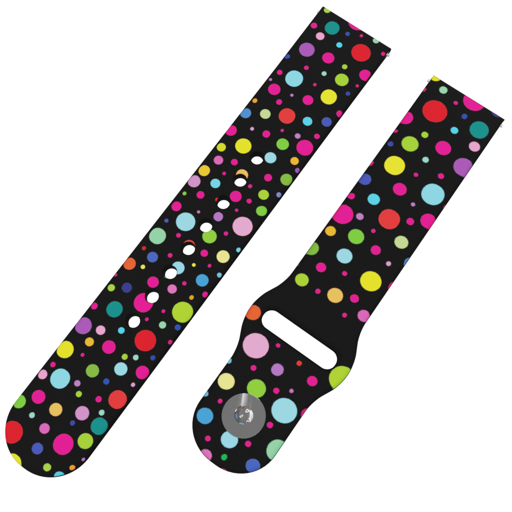 Potištěný univerzální řemínek naší vlastní výroby ve velikosti 20 mm s designem "PUNTÍKY" pro obvod zápěstí 15 - 23 cm. Černý náhradní řemínek s barevnými puntíky. Zamilujte se do barevné palety malýchi velkých puntíků, které vám zlepší den i v tom nejšedivějším počasí.Vlastní výroba i potisk...