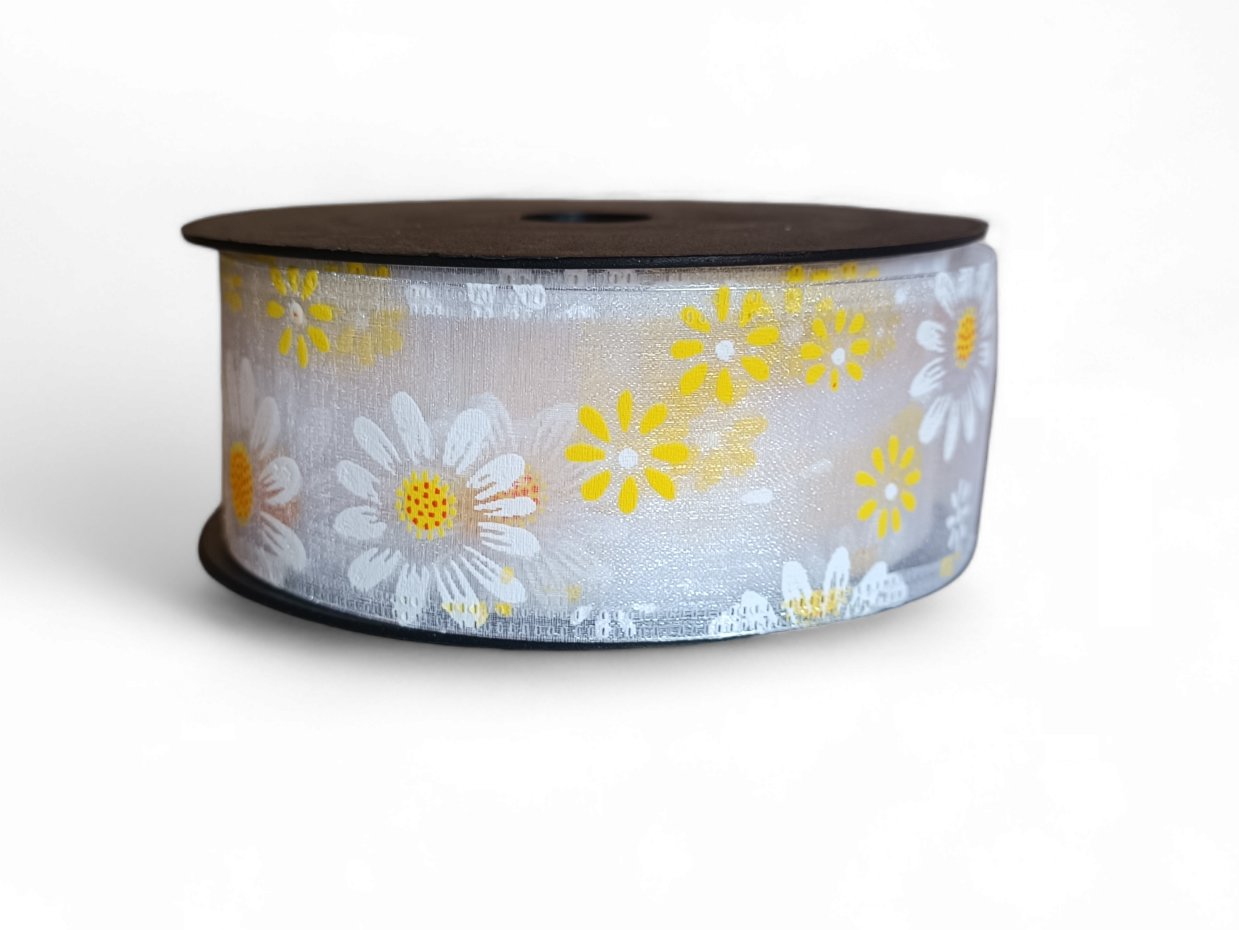 Organzaová stuha s potiskem květu 4 cm x 9 m KW02 103 světle žlutá číst celé