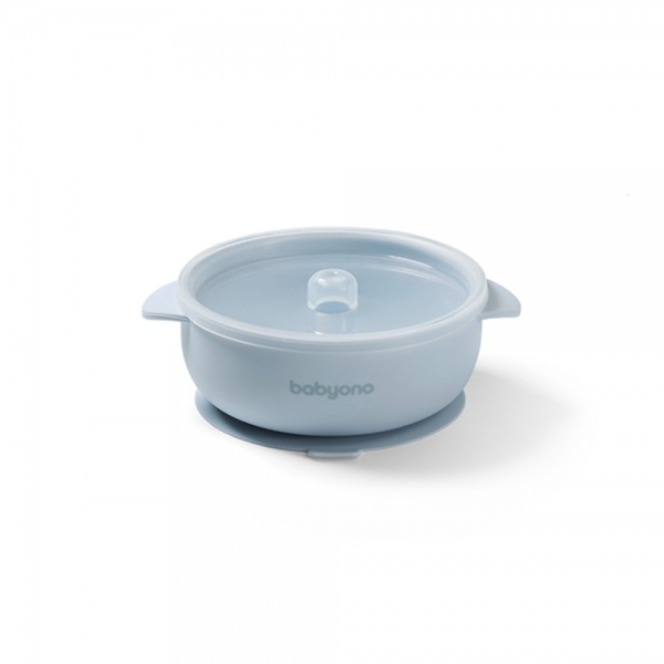 Silikonová dětská miska s přísavkou a víčkem BabyOno - ideální pro zavádění příkrmů.