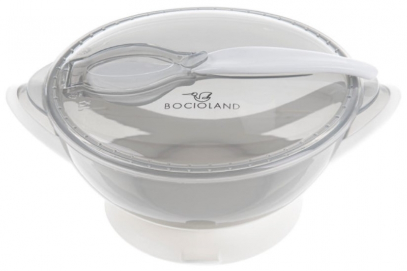 Miska s přísavkou a lžičkou je produkt užitečný na procházku nebo na výlet. Měkké víko, které pevně chrání jídlo, bylo vybaveno úložným systémem, díky kterému se lžíce nezašpiní ani neztratí. Gumová přísavka zabraňuje sklouznutí šálku po stole. Vyrobeno z bezpečných materiálů určených pro styk s potravinami, výrobek je zcela bez Bisfenolu A. Lze jej používat v mikrovlnné troubě a mýt v myčce.