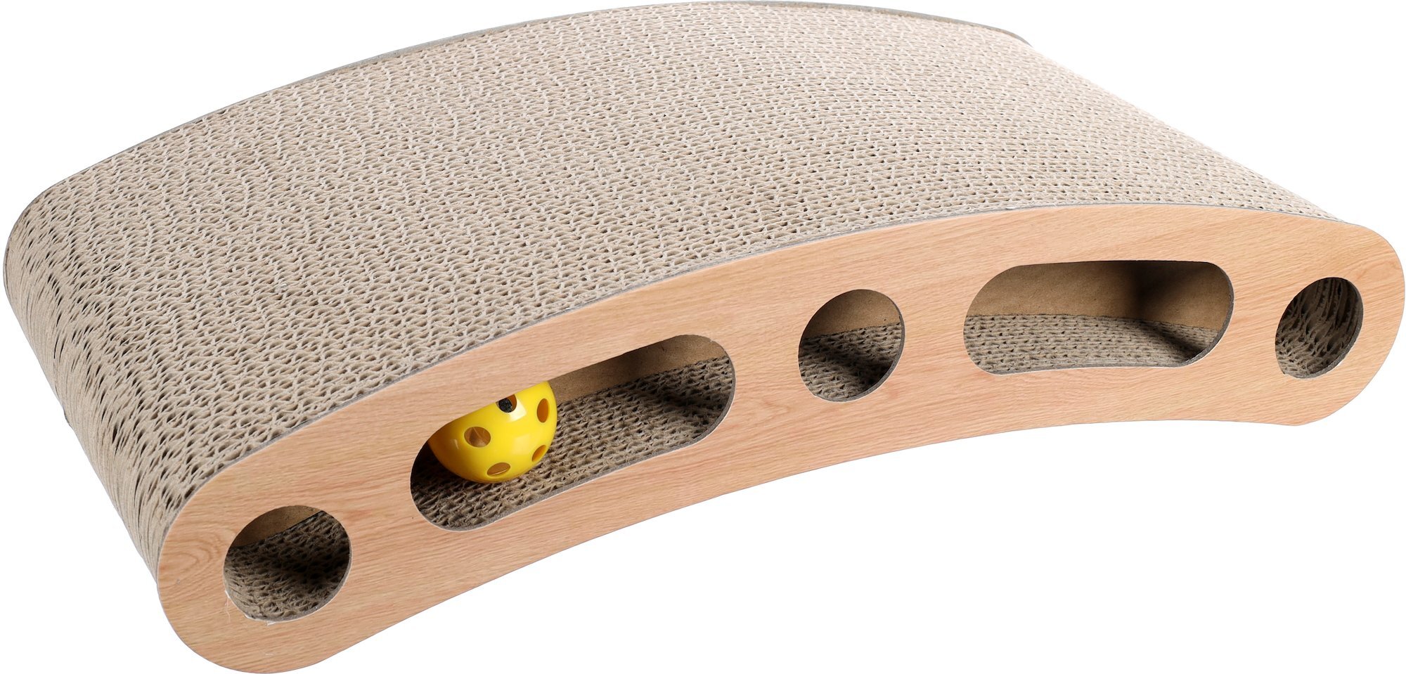 Škrabadlo je vyrobeno z příjemné kartonové lepenky, která je oblíbená zejména díky své šetrnosti k povrchům vašeho domova a zároveň poskytuje kočkám potřebnou odolnost. Díky přidanému catnipu se stává velmi atraktivní, láká kočku ke hraní a škrábání. Zvuk cinkajícího míčku dodává hře další rozměr, stimulující pozornost a zvědavost.