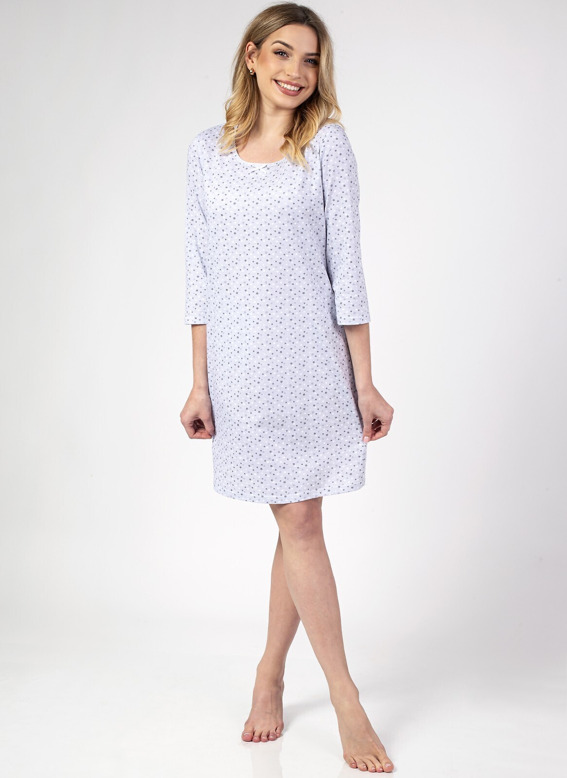 Bawełniana koszula damska- wzór w gwiazdki- dekolt półokrągły- rękaw o długości 3/4- długość przed kolano