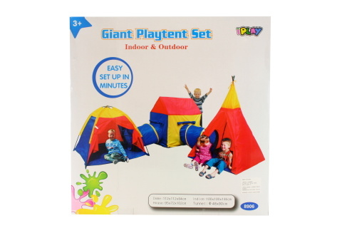 Nezapomenutelná zábava pro všechny děti. Vhodné pro vnitřní i venkovní použití. Ideální na zahradu nebo na terasu. Sada se skládá ze tří domů a dvou tunelů. Ve stanu si může hrát několik dětí najednou. Rozměry iglů stanu cca 112 x 112 x 94 cm, indiálnského stanu 100 x 100 x 135, domku 95 x 72 x 102 cm, postranní tunely 90 x 48 cm. Rozměry balení cca 50 x 50 x 13 cm. Věk 3+
