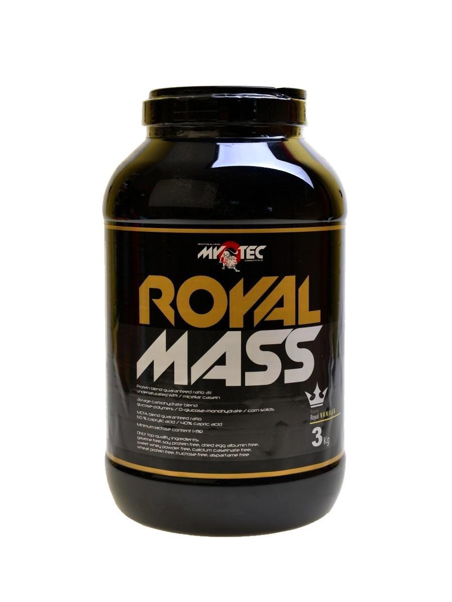 Nabízí nadstandardní parametry funkčnosti, kvality a čistoty, které u běžných marketingových produktů obvykle nenaleznete. Na vývoji této jedinečné formule se podíleli špičkoví němečtí odborníci a specialisté, a to s jednoznačným zaměřením na dva hlavní cíle: maximální možná funkčnost (optimální a bezproblémové vstřebávání živin a využitelnost produktu) maximální možná čistota použitých surovin, minimum balastních látek a nutričně neplnohodnotných složek z hlediska čistoty (sušená syrovátka, sušené mléko, odtučněné mléko, laktóza, sušený vaječný bílek, soja, kolagen (želatina) atd.) Výsledkem této sofistikované symbiózy je Royal Mass, funkční gainer křišťálové čistoty, který svým dynamickým účinkem nabízí parametry, na které jsme po právu hrdi. Royal Mass bez nadsázky překonává všechny dosavadní limity a vytváří novou kategorii vysokoenergetických formulí.