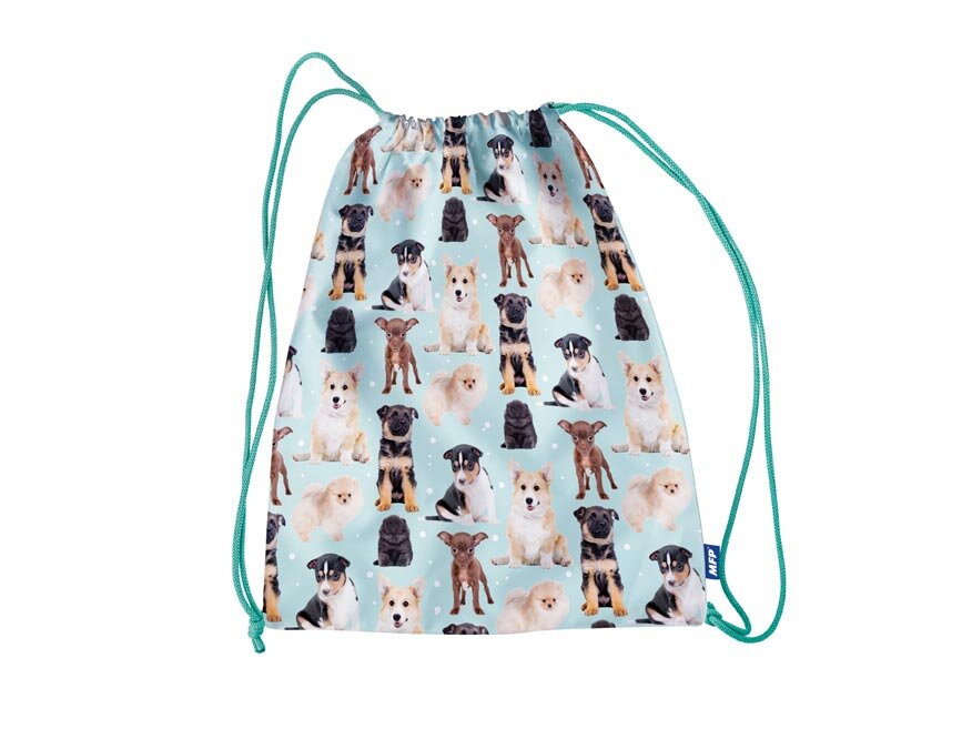 Školní sáček na přezůvky se šňůrkou na zatažení s motivem psů. Pořiďte svým dětem školní vak na přezůvky nebo cvičební úbor. Od této chvíle totiž děti nemusí hledat přezůvky po celé šatně, ale mají je na jednom místě.