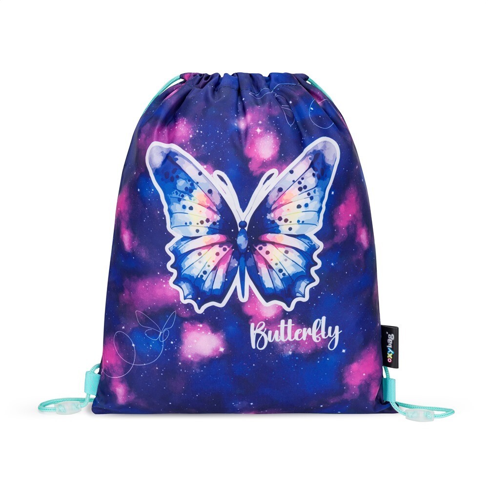 Uchovejte cvičky či přezůvky vždy pohodlně a bezpečně na jednom místě! Sáček Oxybag s motivem motýla je praktickým a stylovým doplňkem pro každého žáka i sportovce.
