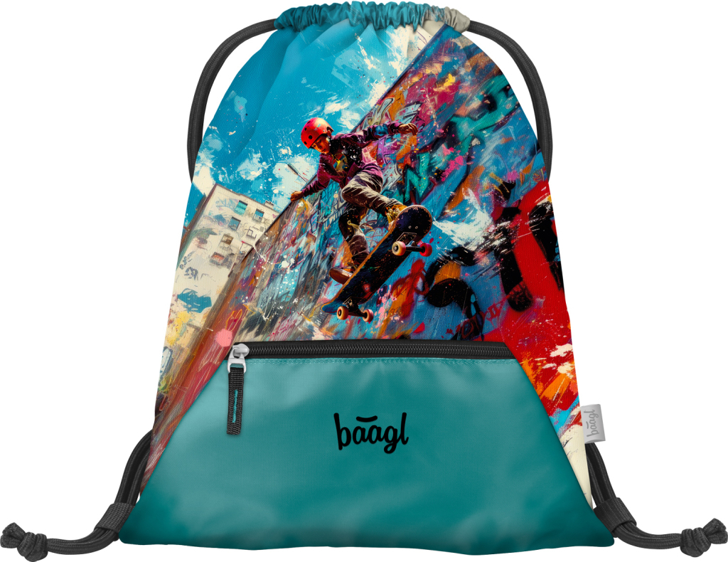 BAAGL Sáček s kapsou Skatepark je ideálním společníkem nejen do školy, ale i na volný čas či sportovní aktivity. Díky praktické kapse na zip a pevné konstrukci udržuje vaše věci bezpečné a snadno dostupné.