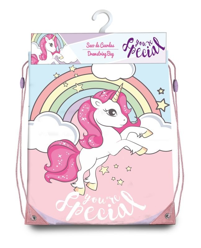 EUROSWAN Taška na tělocvik a přezůvky Jednorožec 41/33Materiál: 100% PolyesterRozměr: 33x41 cmVak na přezůvky se pomocí popruhů zatahne a bezpečně uzavře. Pytlík na tělocvik do školy můžete přenášet na zádech jako batoh, nebo zavěsit na školní tašku. číst celé