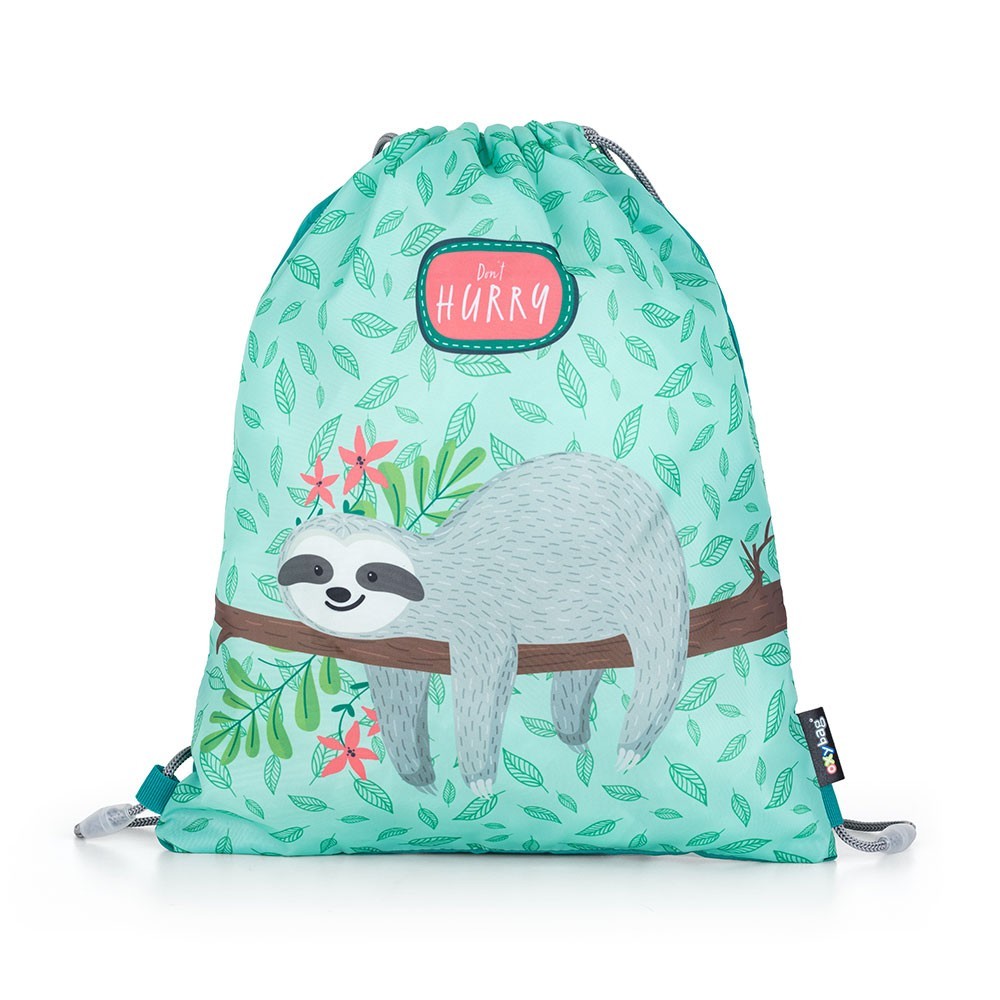 Rozměry: 30 x 37 cmVáha: 50 gSáček na přezůvky s motivem lenochoda.Uzavírání stažením šňůrek, možnost nosit i na zádech nebo připevnit ke školnímu batohu.Materiál 100% polyester.