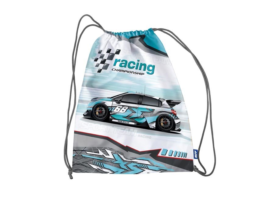 Praktický sáček na přezůvky s motivem závodního auta - ideální pro školáky!