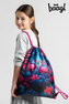 Tento sáček je vyroben z pevného, omyvatelného materiálu, což znamená, že jej můžete snadno udržovat v čistotě. Má praktickou karabinku, kterou jednoduše připevníte na aktovku nebo batoh, takže ho vždy najdete a neztratíte. Sáček se zavírá pomocí pevných tkanic, které zároveň umožňují pohodlné nošení na zádech, podobně jako batoh.