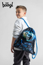 Sáček je vybaven karabinkou, která umožňuje snadné připevnění ke školní aktovce nebo batohu. Pevné tkanice slouží nejen k bezpečnému stažení sáčku, ale také k nošení na zádech jako lehkého batohu. Praktická kapsička se zipem v dolní části sáčku nabízí další prostor pro uložení drobností, které chcete mít chráněné a přehledné.