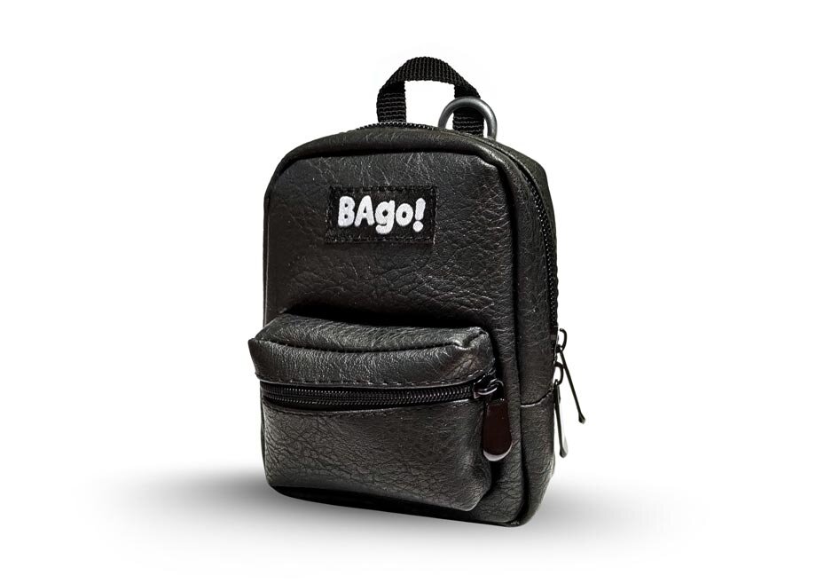 Mini batůžek na ruku v černé barvě, v originálním designu. Stylový doplněk pro každého teenagera. Batůžek disponuje jednou větší kapsou s dvoucestným zipem a jednou menší, vhodnou třeba na drobné. Součástí batůžku je karabina na klíče, popřípadě přívěsek.