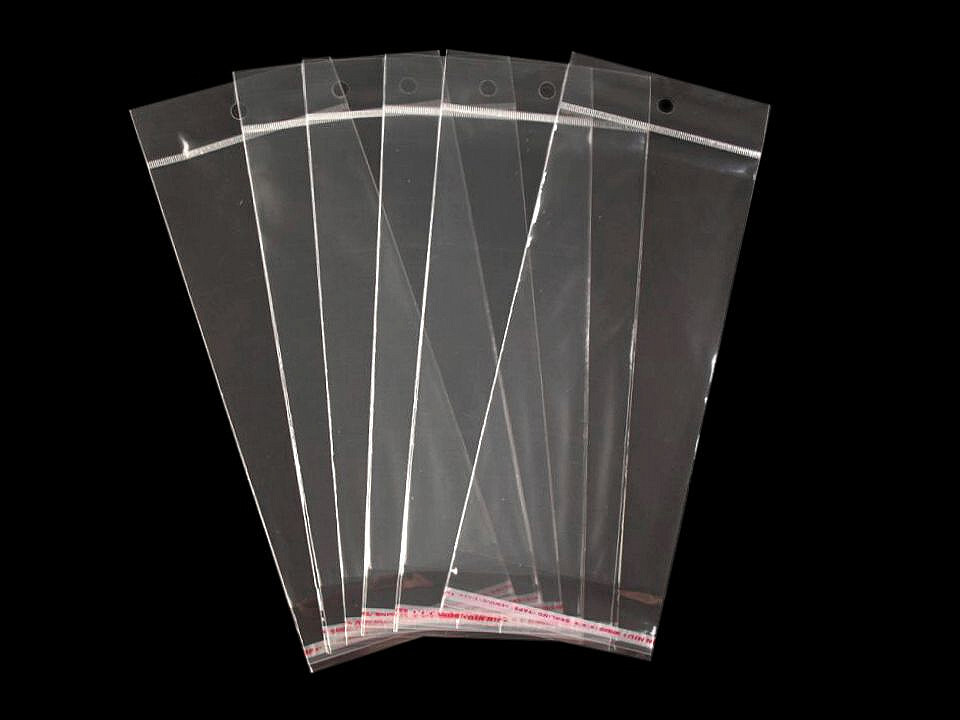 PP sáček s lepicí klopou a závěsem 8x19,5 cm - 100 ks - transparent