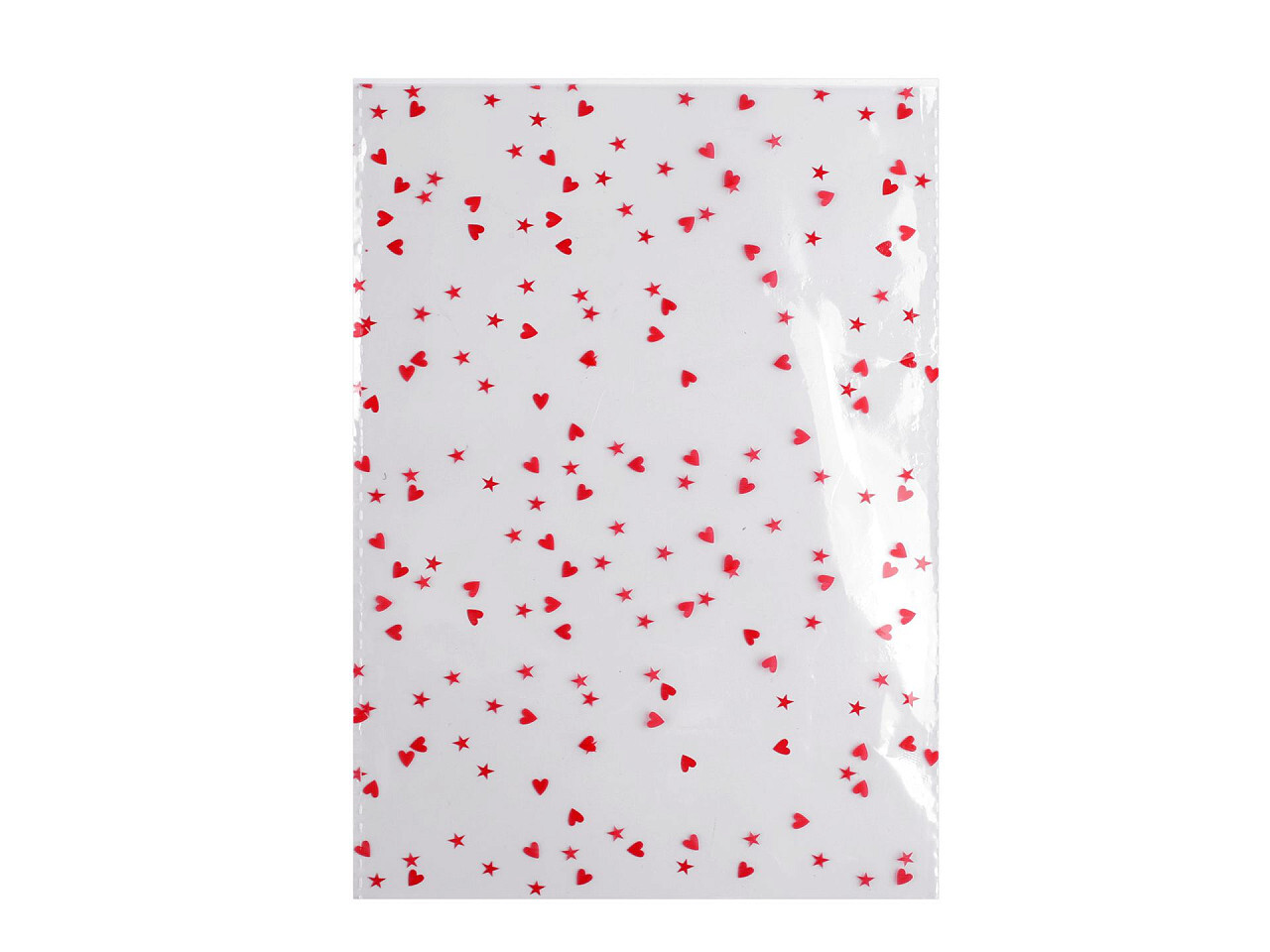 Celofánový průhledný sáček srdíčka 13x18 cm - 100 ks - 3 červená