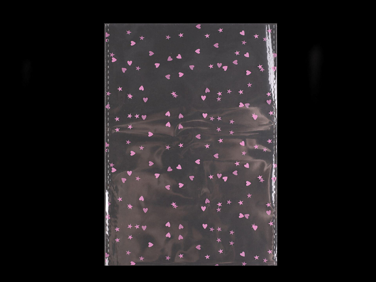 Celofánový průhledný sáček srdíčka 13x18 cm - 100 ks - 2 růžová