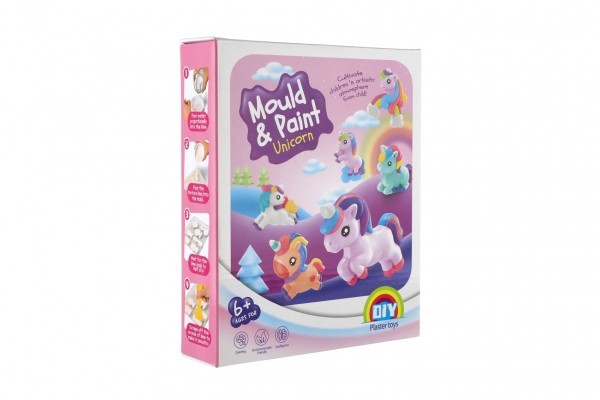 Kreativní sada výroba a malování jednorožce ze sádry s barvami s doplňky v krabici 18x22x5cm