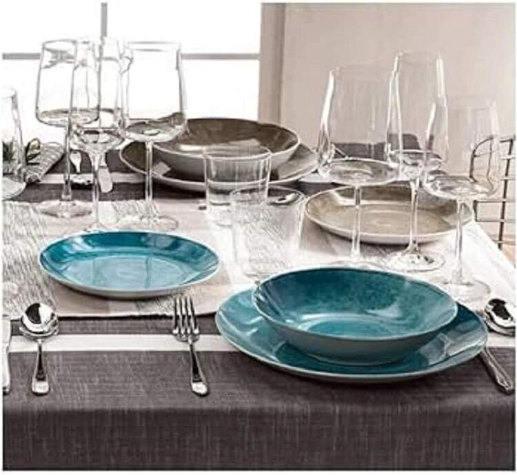 Tento 18dílný servis pro 6 osob je ze série Essential od společnosti Brandani. Výrazné linie a syté barvy pro stůl plný charakteru. Essential je návrh, který dává každodennímu životu ten nejstřízlivější výraz, podle estetického konceptu vyrobeného v rafinovaných tónech a z vysoce kvalitních materiálů. Nádobí je vyrobeno z porcelánu a lze jej mýt v myčce nádobí i v mikrovlnné troubě.
