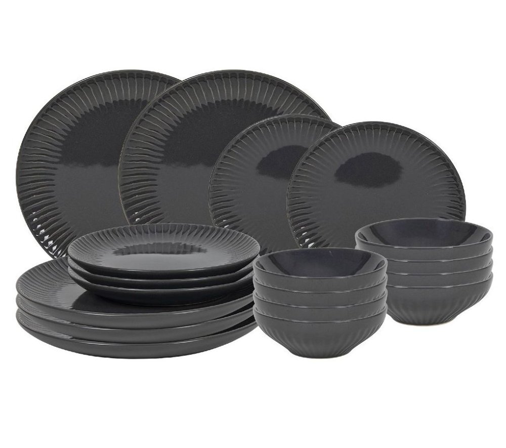 HIT Jídelní sada talířů 18 ks lesklá šedá HT-24327583