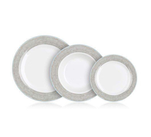 Talířová sada SHADOW značky Banquet obsahuje 18 kusů talířů, konkrétně mělké, hluboké a dezertní talíře. Sada je vyrobena z porcelánu s jemným šedým vzorem. Díky svému elegantnímu designu se hodí pro každou příležitost. Talíře lze dávat jak do mikrovlnné trouby, tak do myčky.