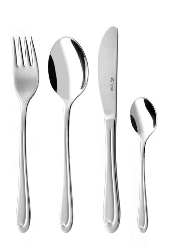 Materiál: nerez 18/10. Mechanicky leštěno do vysokého lesku. Vhodné do myčky. Obsah balení: 6lžíce jídelní, 6 nůž jídelní, 6vidlička jídelní, 6lžíce na kávu.