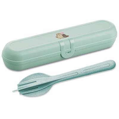 Příborník KLIKK READY PUSHEEN + sada příborů Tyrkysová ORGANIC KOZIOL