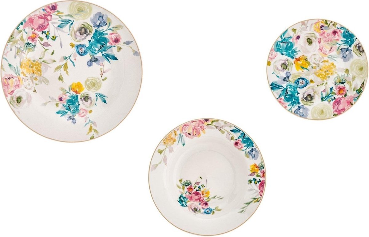 18-ti dílná sada talířů z porcelánu s květinovým vzorem. Ozdobí váš slavnostní stůl.