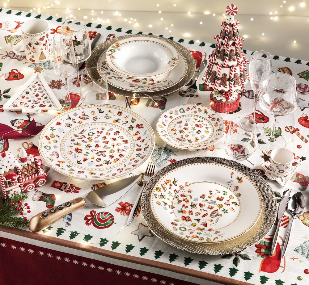 Vánoční jídelní porcelánová 18-ti dílná sada talířů VÁNOČNÍCH CHICCHI E BALOCCHI BRANDANI