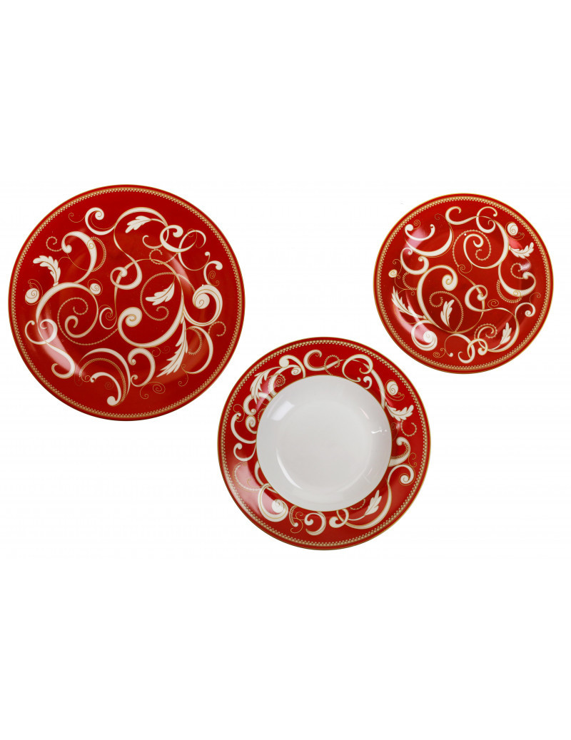 Jídelní 18-ti dílná sada talířů Filo D´Oro Rosso BRANDANI