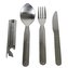 - Obsah sady: lžíce, vidlička, nůž, otvírák na konzervy a lahve